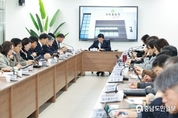 (충남도민일보 =금산) 김천호기자/ 박범인 금산군수는 지난 5일 금산농유원에서 간부회의를 열고 금산농유원에 담긴 의미를 설명하며 이곳에서 열리는 농업인 실용교육 등을 추진하는 데 농업인에게 실질적인 도움이 되도록 신경 쓸 것을 당부했다. 지난해 12월 금산군농업기술센터 내에 개관한 금산농유원은 농업 전문 교육기관으로 교육연구시설, 단체협력사무실, 라이브방송실, 대강당 등 시설을 갖췄다. 특히, 논·밭과 새싹의 의미를 담은 심벌과 농업인의 강직함을 표현한 로고를 통해 농업·농촌의 풍요와 여유를 기원했다. 이어, 박 군수는 “붉은말의 해에는 새로운 각오로 어려움을 극복하고 발전할 수 있도록 해야 한다”며 “긍정적인 마음과 직원 화합에 신경 써달라”고 언급했다. 또한, “군에서 추진하는 큰 사업에 관해 주민들께서 잘 아시도록 노력해야 한다”며 “관련 내용을 설명할 수 있도록 관련 자료를 미리 준비해 달라”고 전했다.